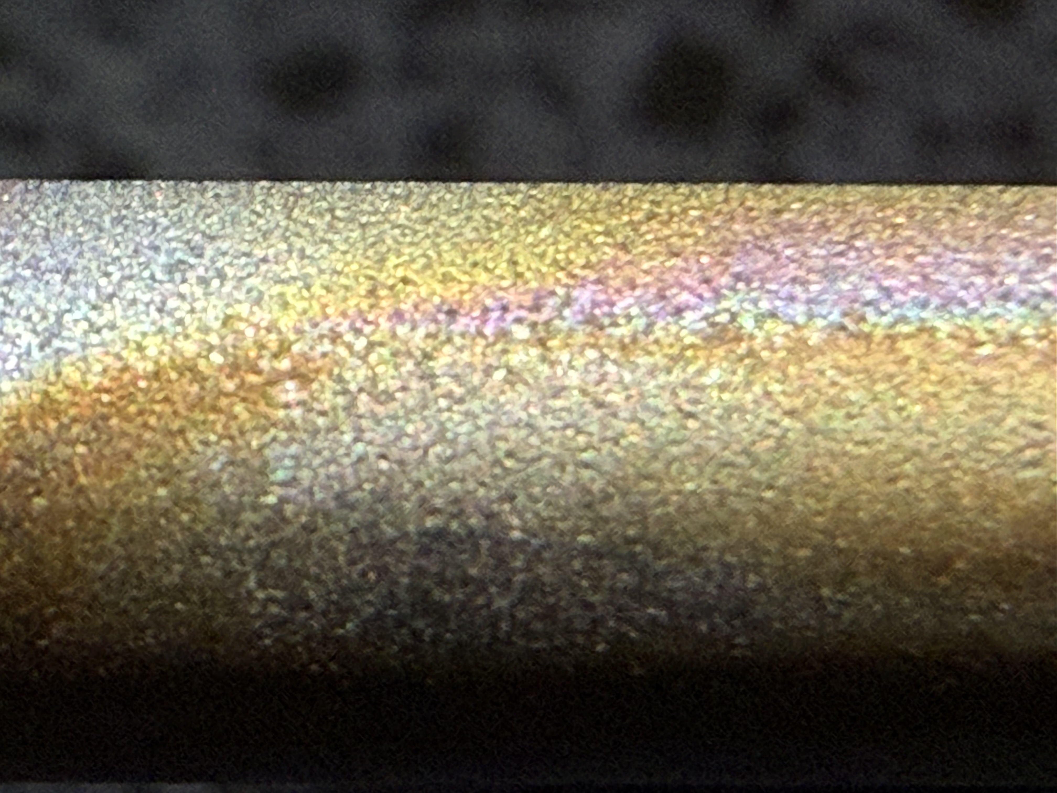 My initial fears were that this was caused by loss of platinum, as titanium is well known for taking on rainbow oxidation patterns. There are two things that give me hope that this isn’t the case: